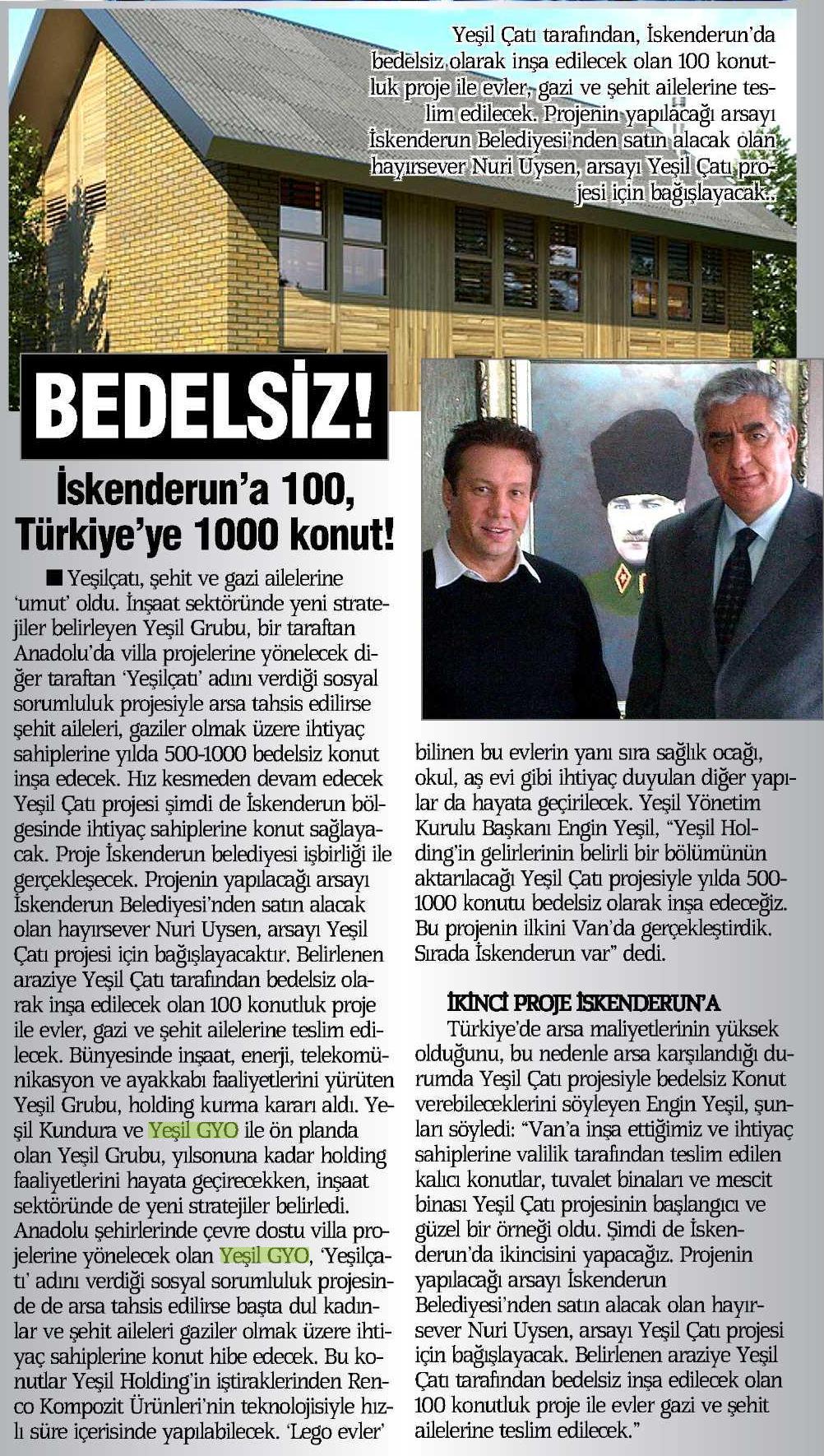 İskenderun`a 100, Türkiye`ye 1000 bedelsiz konut